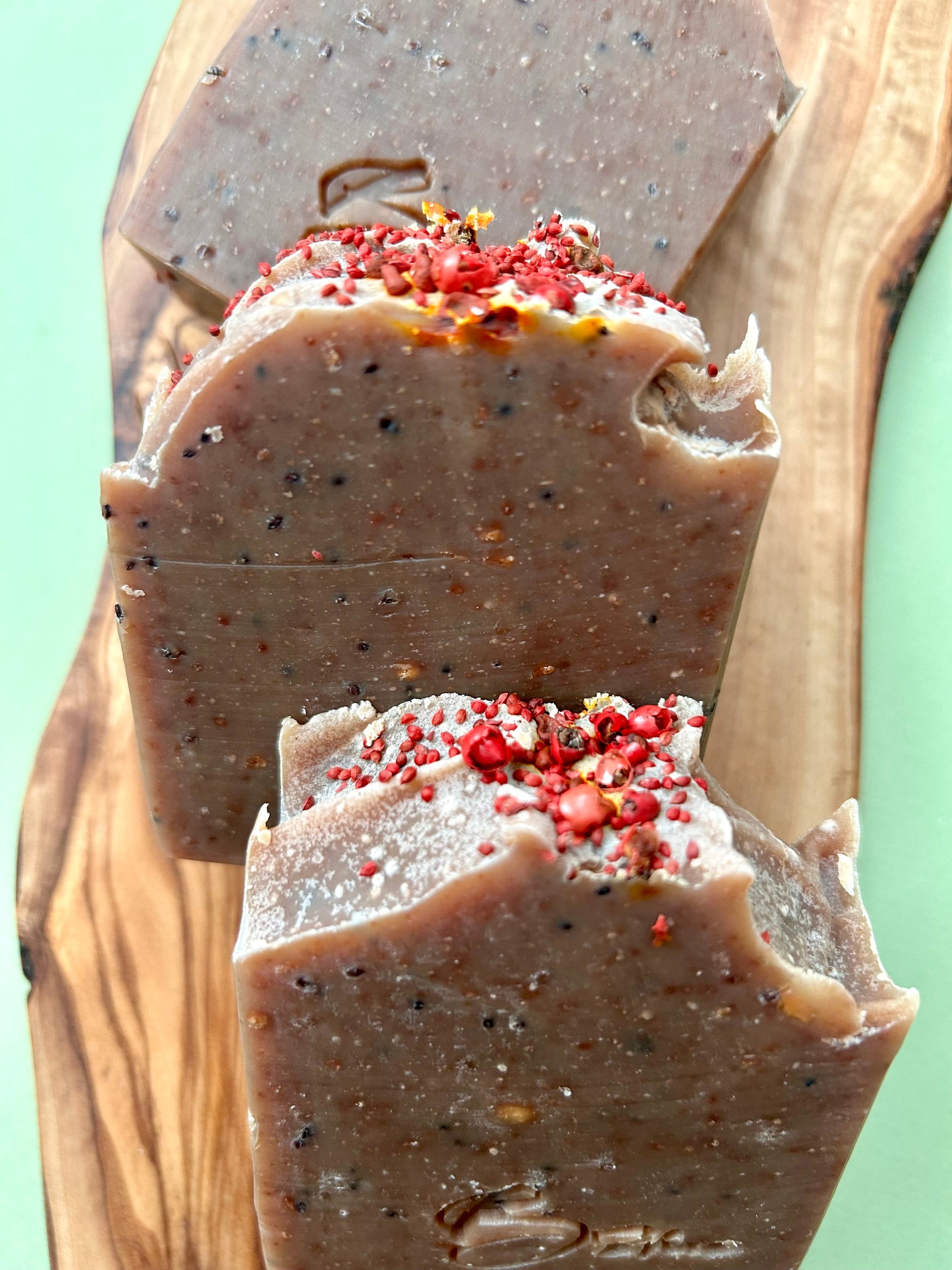 Wrap your skin in cozy nourishment with Merry Berry Cranberry, a handcrafted soap that blends creamy coconut milk, soothing aloe vera, and a festive fragrance of cranberry and cinnamon. Topped with dried cranberry seeds for a gentle exfoliating touch, this bar is a celebration of comfort, care, and seasonal warmth.